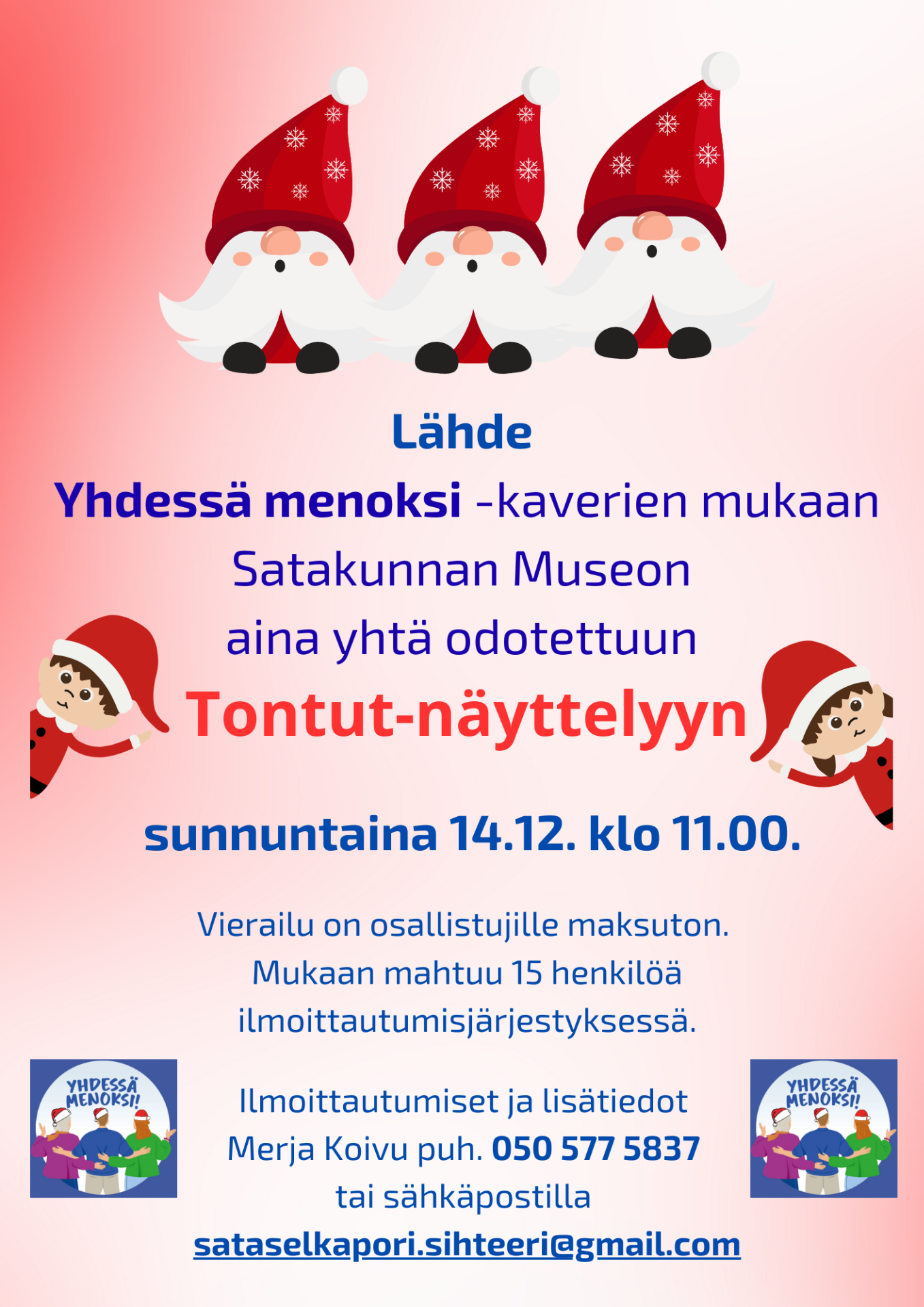 Näin Joulun alla Menoksi-kaverit kutsuvat sinut mukaansa Satakunnan Museon Tontut-näyttelyyn!